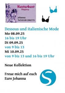 Dessous Johanna ist zu folgenden Zeiten im September im Studio: